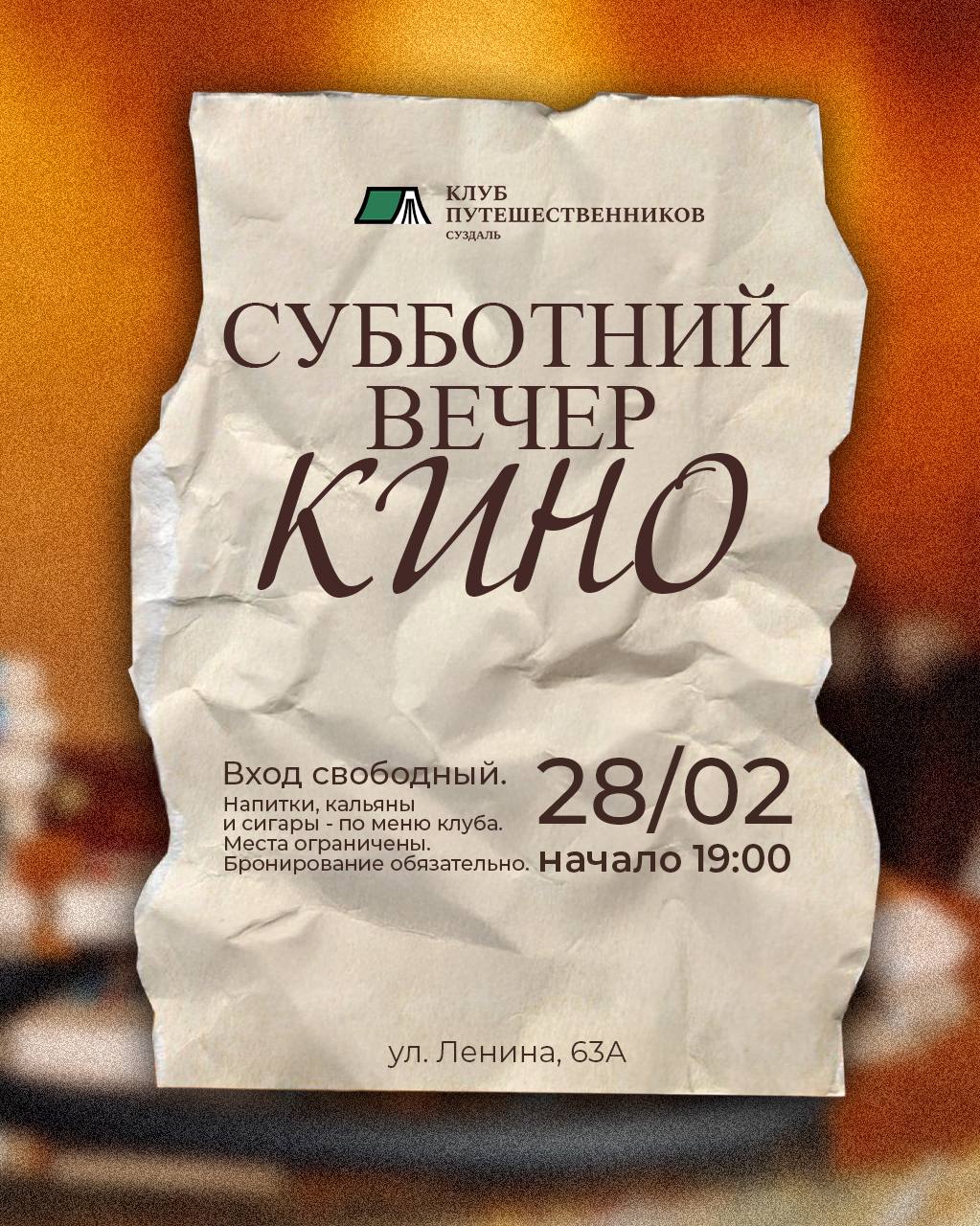 🎬 В субботу встречаемся без повода. Просто чтобы посмотреть хорошее кино в уютной компании.